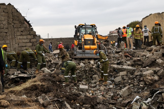 Emergency personnel work at the scene,searching for survivors (Picture: Reuters)