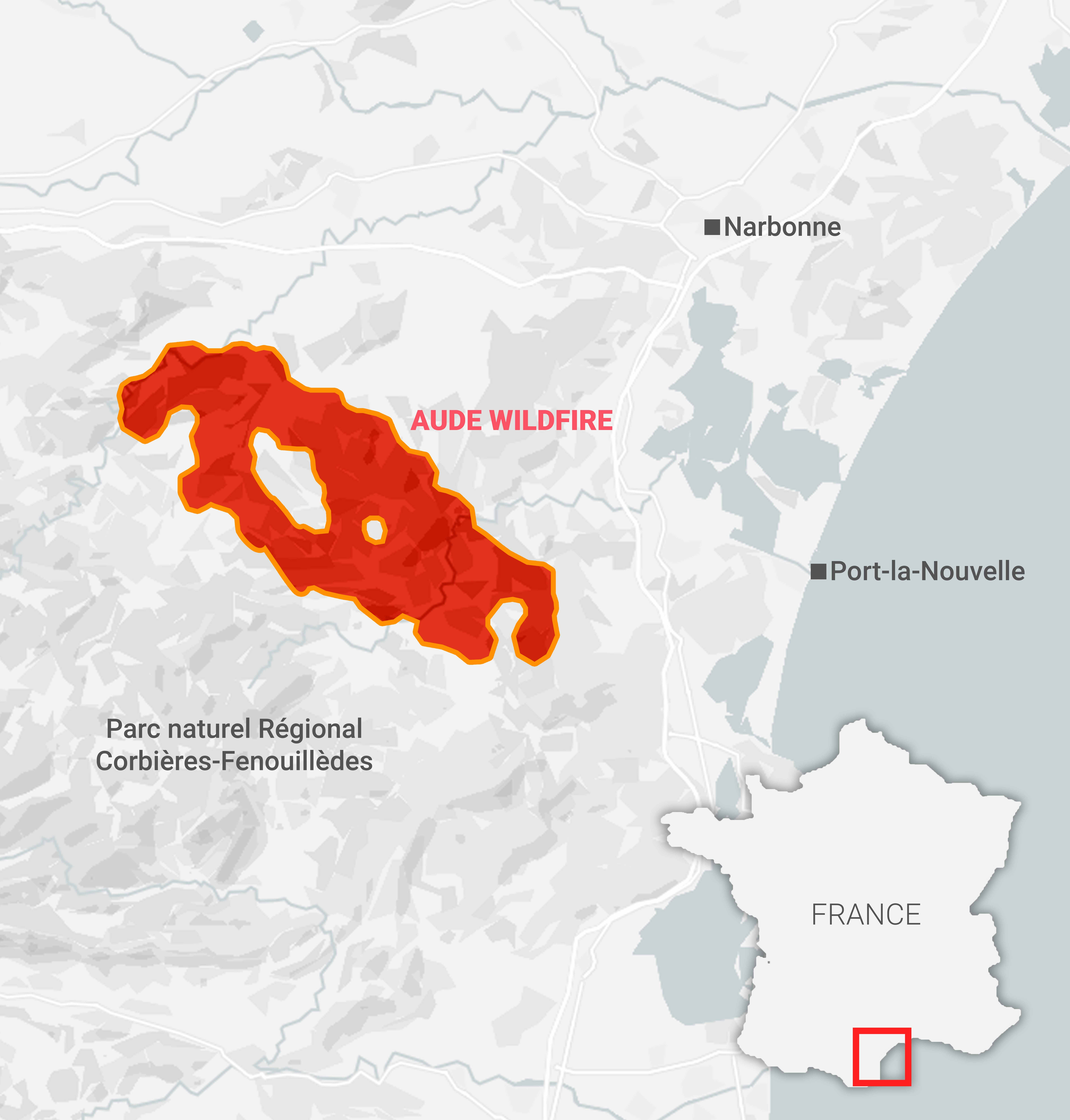 map of france wildfires shows where the aude region is as blaze intensifies