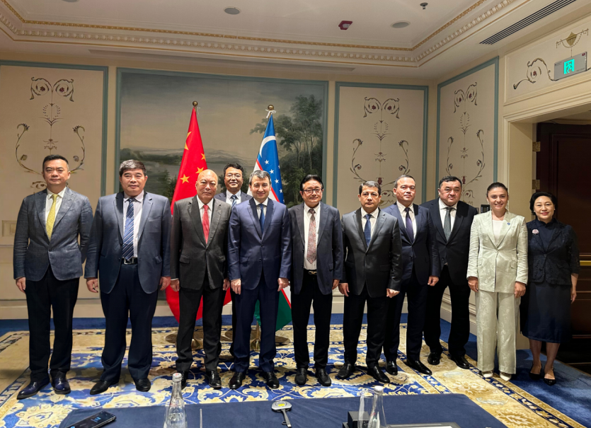Group photo of the "Symposium for Exchanges between Tianjin Enterprise Delegation and Uzbekistan's Senior Government Officials" hosted by the Tianjin Municipal Federation of External Tianjin Entrepreneurs