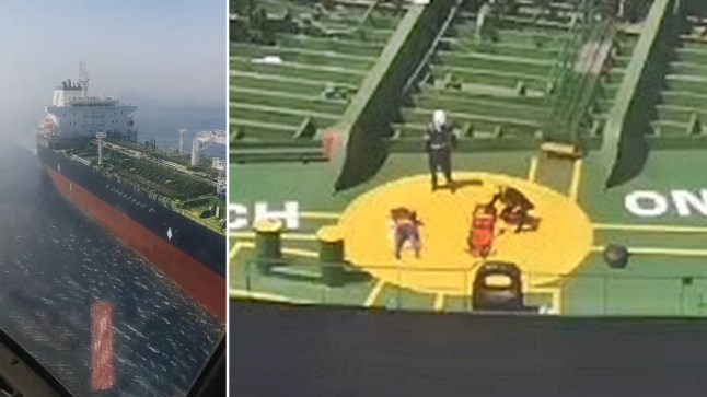 The helicopter team released dramatic photos of the moment he was rescued from the merchant ship.