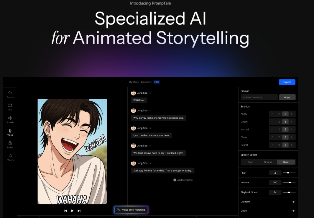 • Narrative-First Coaching of AI – The platform deploys AI engines specialized for animated storytelling: from “character-aware syncing” (where voice emotion and timing are auto-matched) to “dialogue-driven editing” (where a single line of text can grow into a full scene).