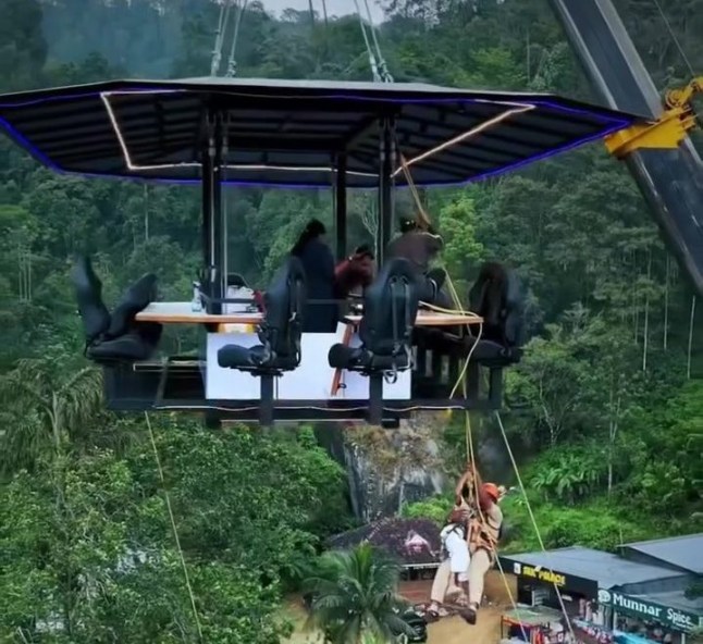 Diners had to scale down a 150-foot-long rope (Picture: Kerala Fire and Rescue Services)